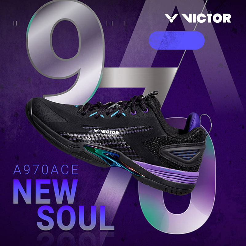 Dvoranski copat Victor A970ACE je najboljši copat iz serije All-Around, ki se dobro prilega in nudi izredno udobje. Zasnovan je z izboljšanima tehnologijama HYPEREVA in sistemom za blaženje E-TPU, da se zmanjša teža in izboljša lastnost odriva.