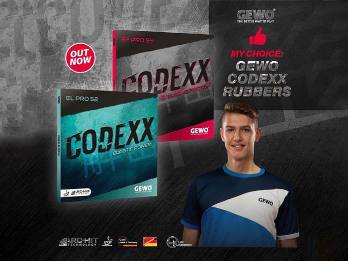 Nova serija gum GEWO Codexx je zasnovana kot popolna kombinacija evropske in azijske gume. Združuje dinamično, trdo gobo z rahlo lepljivo, a še vedno prilagodljivo zgornjo plastjo (Architect Technology).