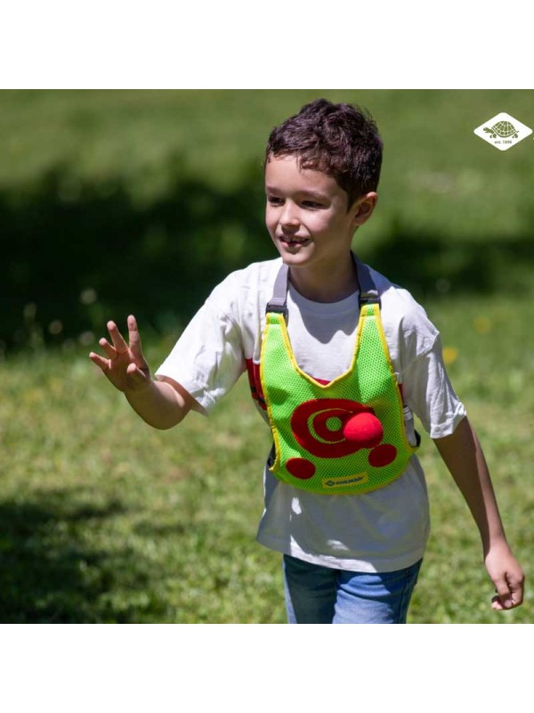 Dva brezrokavnika na ježka se lahko prilagodita vsaki velikosti otroka. Naglavni trak in bočni pas sta nastavljiva po širini. Preprosto povlecite brezrokavnik čez glavo, prilagodite širino in zaskočite bočni pas (kot nahrbtnik).