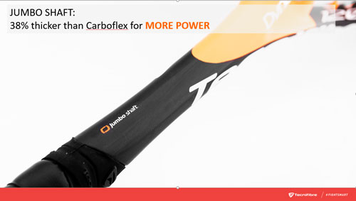: 38% širši okvir kot ga ima Carboflex, omogoča večjo moč udarcev in boljšo stabilnost loparja